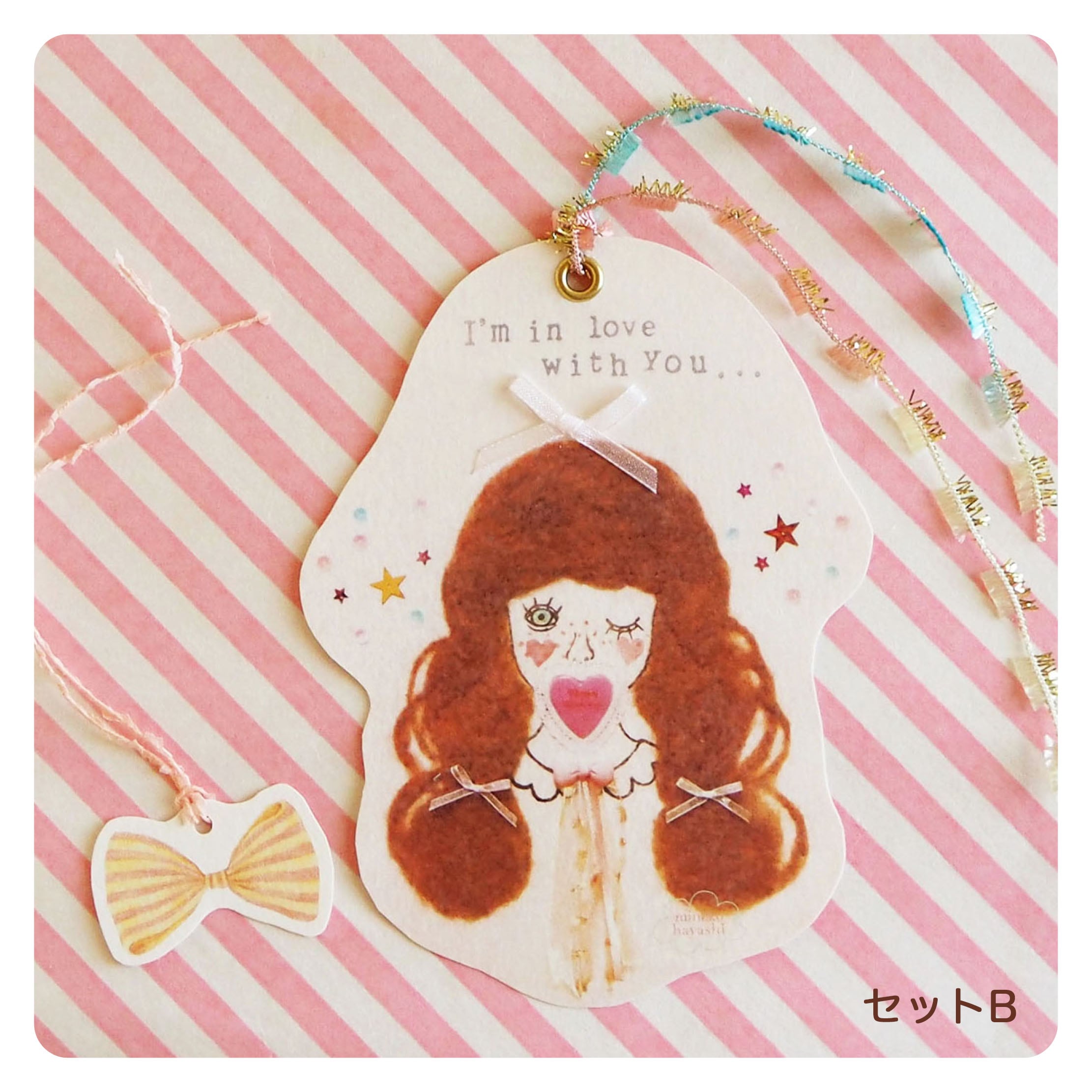 オリジナル作品、ふわふわガールとカップケーキのメッセージカードセット。あたたかみのある紙に、オーガンジーのりぼんやキラキラりぼん・・・いろいろな素材のマッチング感がかわいい。単体でお使いいただけるのはもちろん、りぼんがついているのでプレゼントのラッピングに結んでつけることもできます。一手間かけた可愛さを演出してくれますよ。大切な人に気持ちを伝えてみてくださいね。本の栞やインテリアとしてもお使いいただけます。